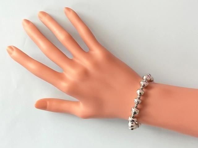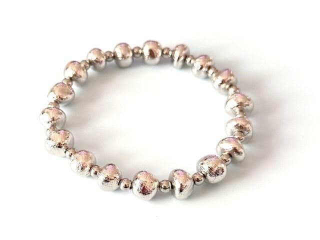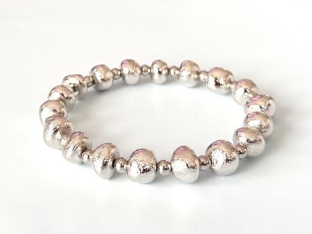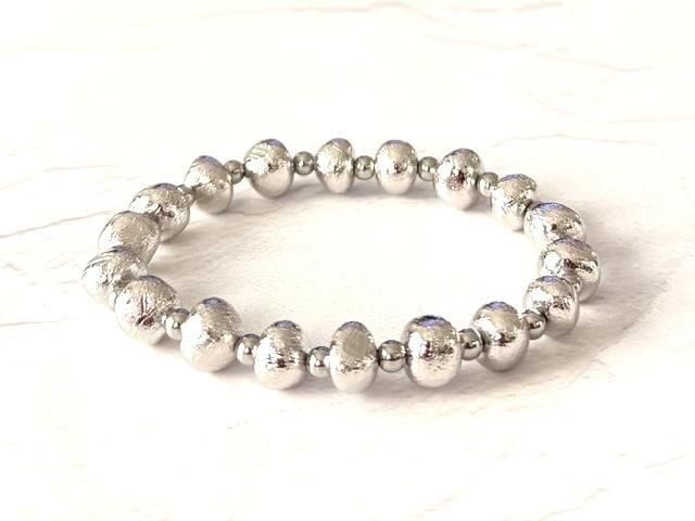 メテオライトにコッパー銅コーティングを施しシルバーカラーに仕上げたブレスレットです。天然石よりも重さがあります。